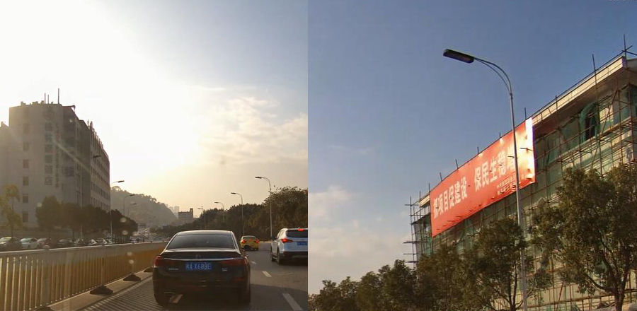 RV1108在逆光場景表現(xiàn)穩(wěn)定,強光下,交通標(biāo)識牌,建筑群、周邊街景等依然清晰。體現(xiàn)了RV1108圖像處理在“寬動態(tài)”方面的優(yōu)勢。