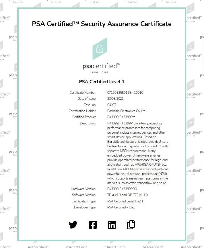 RK3399Pro及RK3399通過Arm平臺安全架構(gòu)PSA認證