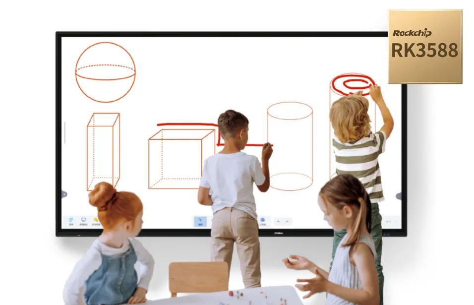區(qū)別于傳統(tǒng)僅用于教學(xué)演示的大屏,搭載RK3588的RC系列集高清顯示、交互式電子白板、電腦、電視、音箱等多功能于一身,可實現(xiàn)內(nèi)容數(shù)字化和學(xué)情數(shù)據(jù)化,具備人機(jī)交互、智能識別、學(xué)習(xí)數(shù)據(jù)分析等功能。