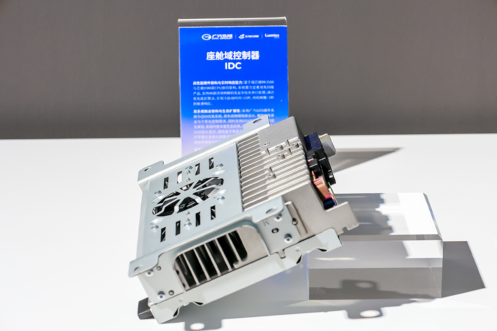現(xiàn)場,廣汽展出了雙方合作的座艙域控制器IDC,采用瑞芯微RK3588M智能座艙旗艦芯片,高性能硬件架構(gòu)與實時響應能力,配備6TOPS系統(tǒng)AI算力,支持8K超清視頻解碼及復雜任務并行處理,可實現(xiàn)冷啟動時間<15秒,待機喚醒<3秒的極速響應。