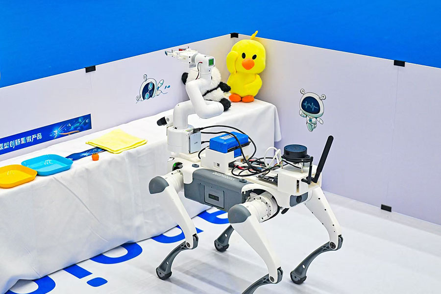 • 機(jī)器狗+機(jī)械臂輕量級(jí)服務(wù)機(jī)器人:基于RK3588運(yùn)行ROS2實(shí)現(xiàn)機(jī)械臂與機(jī)器狗的控制,使用端側(cè)RK1820部署的Qwen LLM與VLM進(jìn)行任務(wù)的規(guī)劃與編排,具備自主導(dǎo)航與精準(zhǔn)操作的一體化能力,支持復(fù)雜環(huán)境下實(shí)現(xiàn)物體精準(zhǔn)抓取與搬運(yùn)任務(wù),適用于巡檢、安防等工業(yè)場(chǎng)景