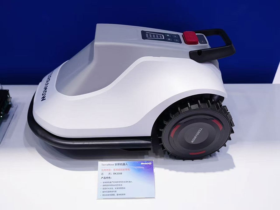 • 智能割草機(jī):純視覺導(dǎo)航割草機(jī)器人,搭載高精度3D感知AI視覺系統(tǒng),無需RTK天線,無需物理圍線,真實(shí)AI自動(dòng)建圖,實(shí)現(xiàn)厘米級(jí)避障,展示了瑞芯微在消費(fèi)級(jí)與專業(yè)級(jí)機(jī)器人市場(chǎng)的廣泛賦能