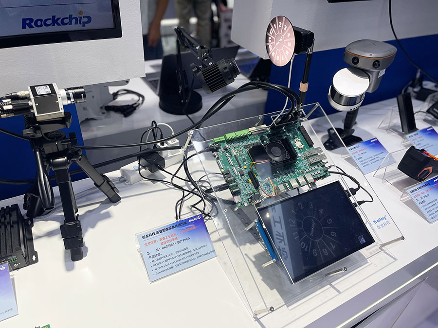 • 工業(yè)視覺:展出了涵蓋工業(yè)相機(jī)、掃碼器、3D打印機(jī)、測(cè)繪儀器、AI監(jiān)測(cè)等多形態(tài)終端產(chǎn)品,重磅推出基于RK3576平臺(tái)的大語言+圖像多模態(tài)大模型創(chuàng)新方案。該方案成功突破傳統(tǒng)視覺模型的局限,在邊緣側(cè)實(shí)現(xiàn)了融合語境理解與視覺感知的智能解析能力。通過輕量化模型優(yōu)化與NPU加速技術(shù),實(shí)現(xiàn)了較高實(shí)時(shí)推理速度和圖像識(shí)別準(zhǔn)確率,廣泛應(yīng)用于智能制造、智慧安防等場(chǎng)景